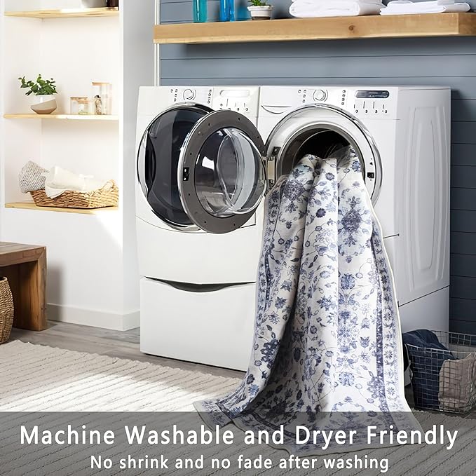 vivorug Runner Rug 2'x7' Vintage Washable Non-Slip Runners for Hallways Kitchen Entryway Laundry Room Carpet Hallway Runner Ivory/Blue