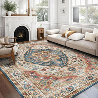 vivorug 9x12 Area Rugs for Living Room, Non Slip Machine Washable Vintage Beige Rug, Ultra-Thin Lightweight Large Area Rug for Bedroom, Dining Room, Low Pile