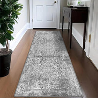 vivorug Grey Runner Rug 2x10 Machine Washable Rug with Non-Slip Backing, Ideal for Kitchen Hallway Entryway Laundry Room - Vintage, Durable, Easy Clean, Low Pile Carpet Runner