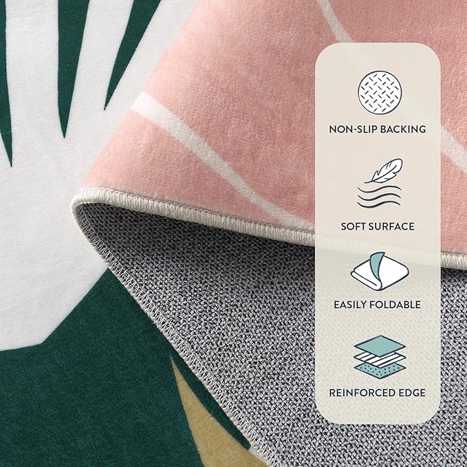 Lahome Washable Rug 5x7 - Rugs for Living Room 5x7 Non-Slip Ultra-Thin Carpet for Bedroom Cute Soft Kids Nursery Rug, Boho Botanical Print Indoor Floor Rug for Entryway Office (5'x7',Green/Pink)