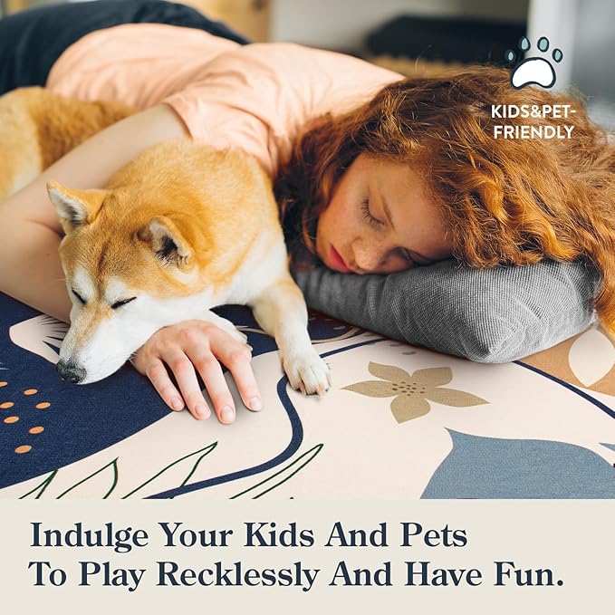 Lahome Rug for Living Room - 5x7 Area Rug Washable Non-Slip Bedroom Carpet Ultra-Thin Throw Cute Soft Kids Nursery Rug, Boho Botanical Print Stain Resistant Indoor Rugs for Dorm Entryway Office