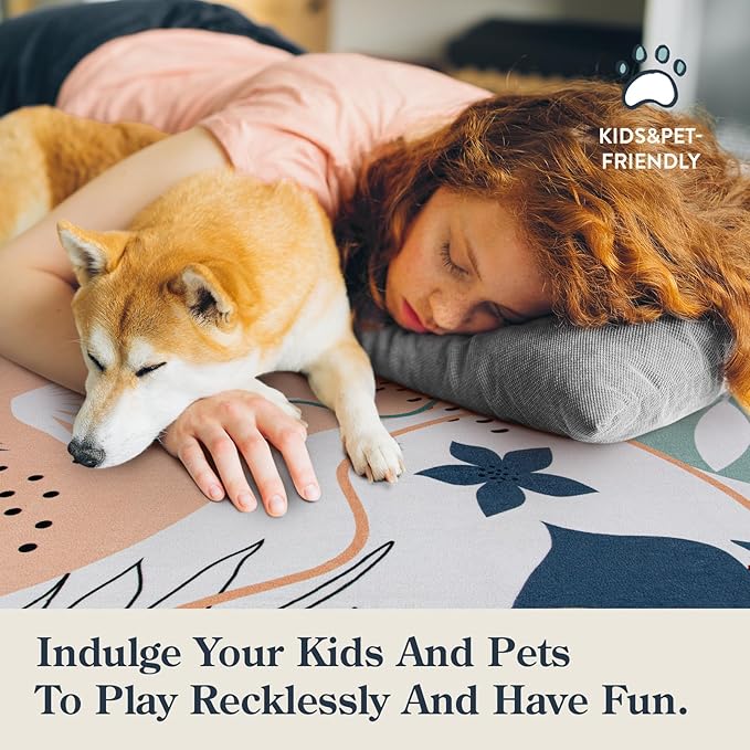 Lahome Washable Area Rug 5x7 - Non-Slip Soft Carpet for Bedroom Ultra-Thin Stain Resistant Rug for Living Room Throw Cute Kids Nursery Rug, Boho Botanical Print Indoor Rugs for Entryway Office
