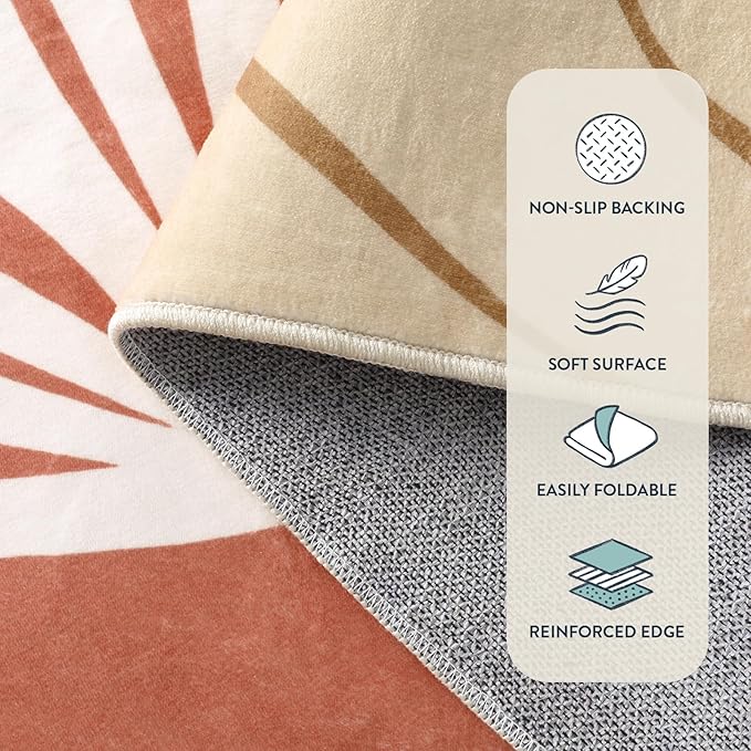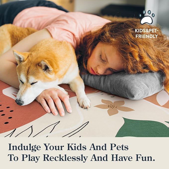 Lahome 4x6 Area Rugs, Washable Rug 4x6 for Living Room Soft Carpet for Bedroom Nursery Kids Room, Botanical Print Non-Slip Low Pile Carpet for Entryway Office Playroom Kitchen, Coral
