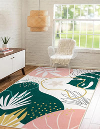 Lahome Area Rugs 4x6 Washable Soft Bedroom Rugs - Non-Slip Ultra-Thin Rugs for Entryway Stain Resistant Floor Rug, Boho Botanical Print Indoor Rug for Living Room Kitchen Office (4'x6',Green/Pink)