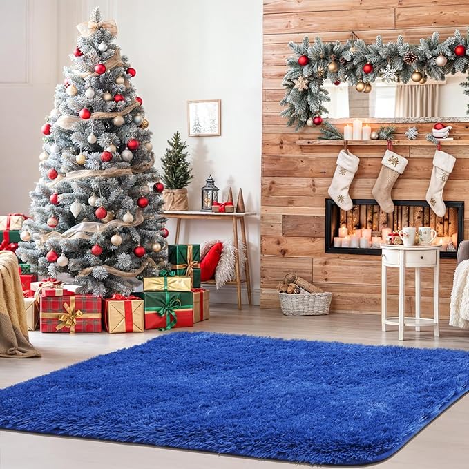 Small Bedside Rug, 2x3 Non Slip Fluffy Shaggy Entryway Throw Rugs for Bedroom Living Room, Indoor Floor Carpet for Kids Girls and Boys, Nursery Rooms Mat, Home Decor Aesthetic, Blue