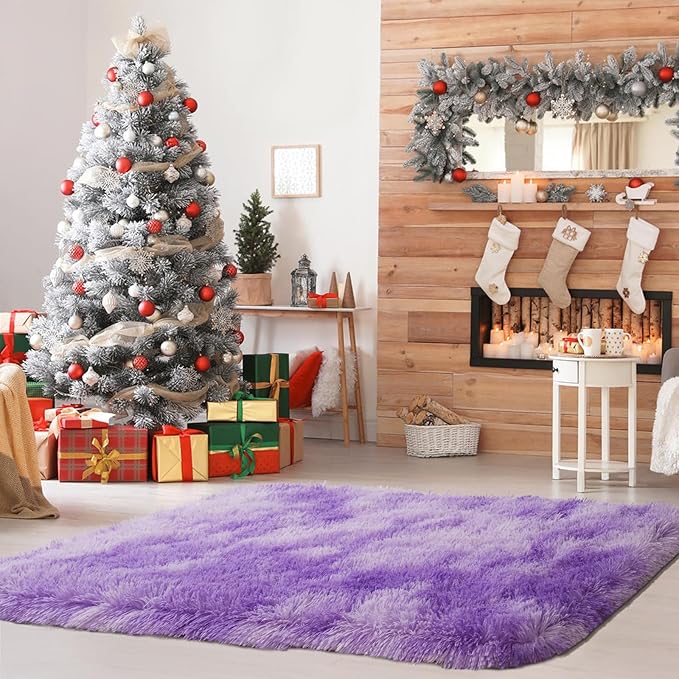 Purple 2x3 Fluffy Area Rug for Girls Bedroom, Kids Playroom, Nursery Room, Teen Living Room, Dorm, Baby Room Decor
