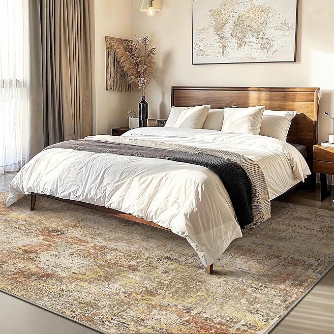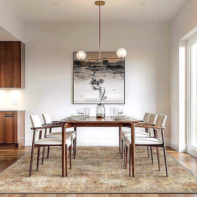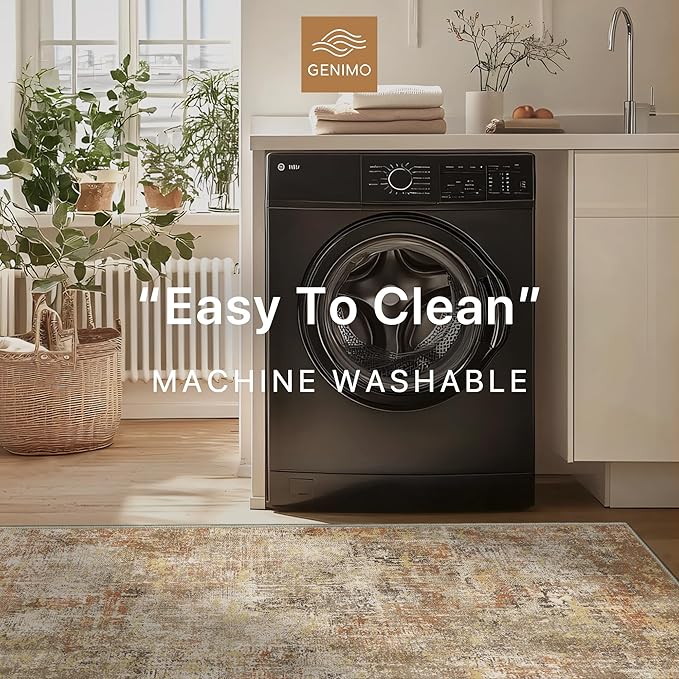 GENIMO Washable Area Rugs for Living Room Bedroom, 8x10 Modern Abstract Non Slip Rug, Low Pile Soft Contemporary Indoor Floor Carpet Cover for Dining Room Kitchen, Orange