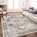 3'x5' Dark Blue Vintage Washable Thin Area Rug Traditional Floor Cover Foldable Indoor Distressed Non Slip Carpet for Bedroom Living Room Bathroom