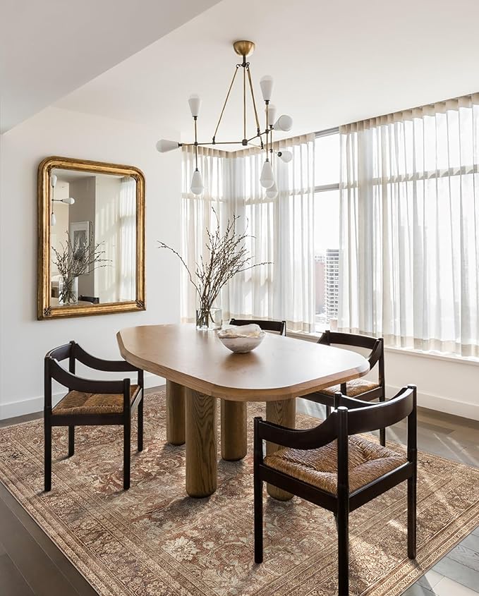 vivorug 5x7 Area Rugs - Ultra-Thin Washable Rug with Non-Slip Backing, Ideal for Living Room, Bedroom, Kitchen Floor Carpet - Vintage, Easy Clean, Durable, Brown