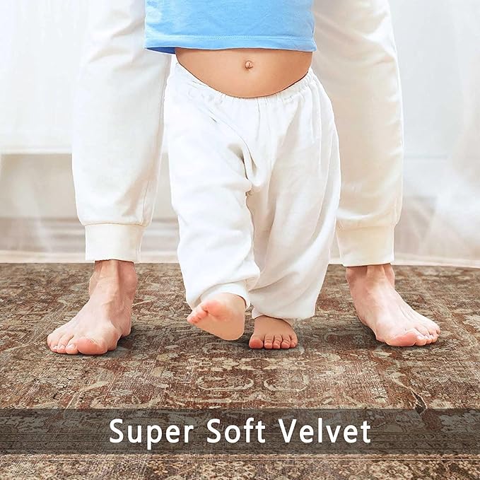 vivorug 6x9 Area Rugs, Ultra-Soft Washable Rug for Living Room Dinner Room Bedroom, Non-Slip Vintage Rug, Indoor Carpet Large Area Rug, Brown