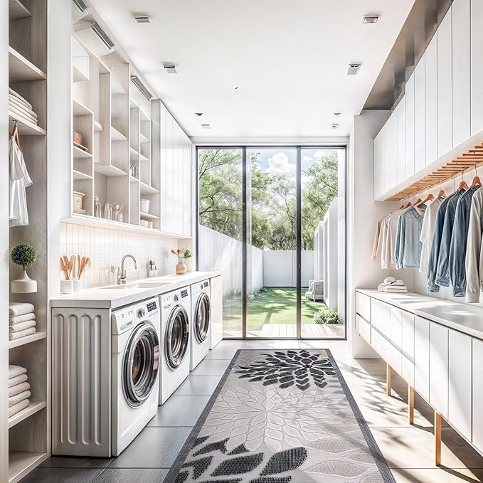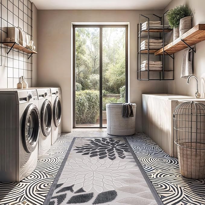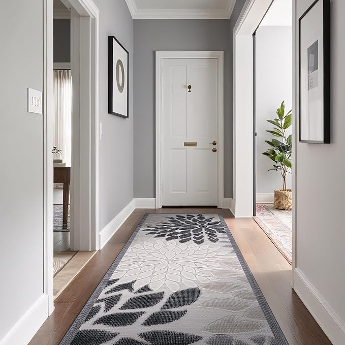 Beverly Rug Outdoor Runner Rug 2x7 Modern Floral Tropical Area Rugs for Indoor and Outdoor Patio Easy to Clean Non Shedding Living Room Porch Garden Washable Outside Carpet (2 x 7 Beige)