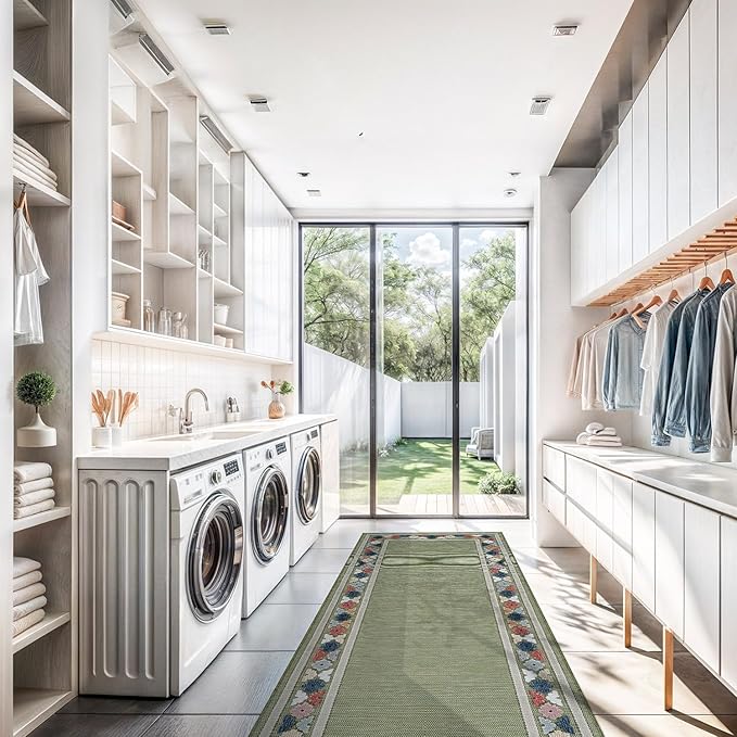 Beverly Rug Outdoor Runner Rug 2x7 Modern Floral Bordered Area Rugs for Indoor and Outdoor Patio Easy to Clean Non Shedding Living Room Porch Garden Washable Outside Carpet (2 x 7 Green)