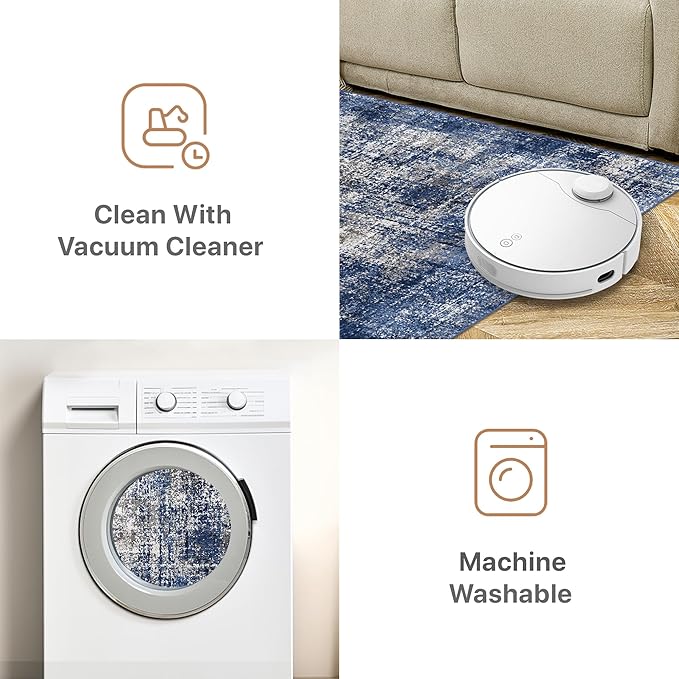 GENIMO Washable Area Rugs for Living Room Bedroom, 9x12 Modern Abstract Non Slip Rug, Low Pile Soft Contemporary Indoor Floor Carpet Cover for Dining Room Kitchen, Blue&Gray