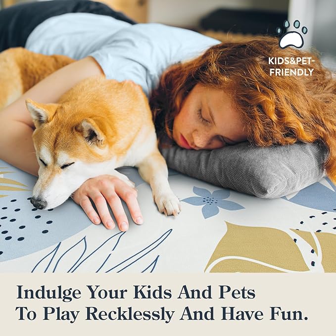 Lahome 8x10 Area Rugs for Living Room - Non-Slip Washable Ultra-Thin Soft Bedroom Rug 8x10 Under Bed, Boho Botanical Print Carpet for Dining Room Office Nursery, Blue