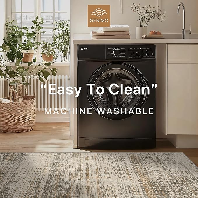 GENIMO 8x10 Washable Area Rug – Modern Abstract Non-Slip Low Pile Contemporary Indoor Floor Carpet for Living Room, Bedroom, Dining Room, Kitchen, Office, Brown