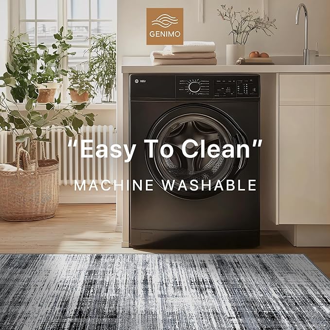 GENIMO 8x10 Washable Area Rug – Modern Abstract Non-Slip Low Pile Contemporary Indoor Floor Carpet for Living Room, Bedroom, Dining Room, Kitchen, Office, Black
