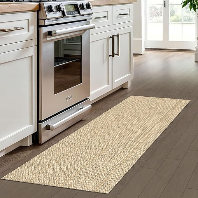 IOHOUZE Washable Runner Rug 2x6 Non Slip Runners for Hallways Entryway Runner Indoor, Kitchen Rugs Woven Cotton Floor Carpet for Kitchen Hall Entrance Bedroom, Warm Beige/Orange/Apricot