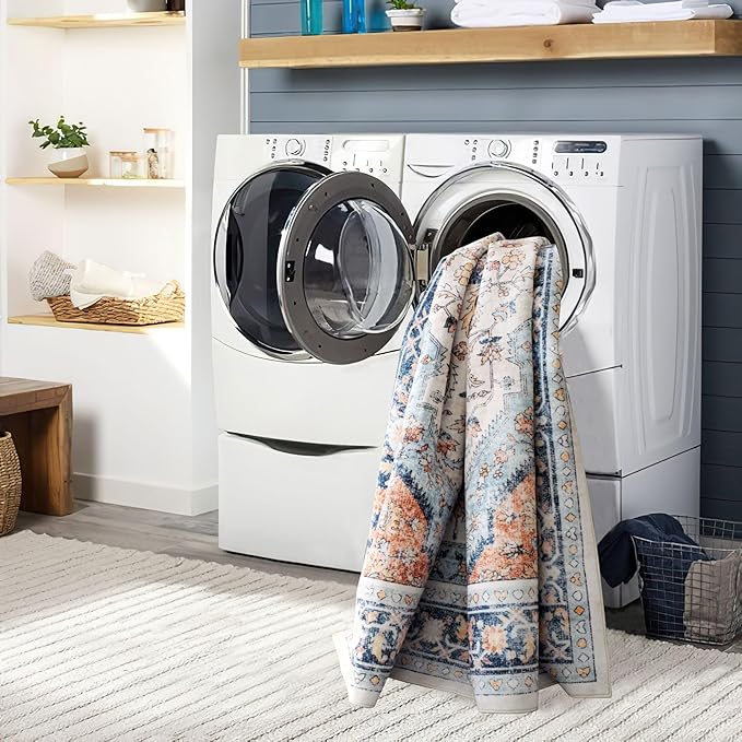 vivorug 6x9 Area Rugs, Ultra-Soft Washable Boho Rug for Living Room Dinner Room Bedroom, Non-Slip Vintage Floral Indoor Carpet Large Area Rug Orange/Navy