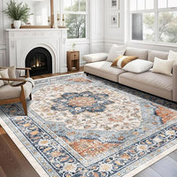 vivorug 8x10 Area Rugs for Living Room, Non-Slip Backing Washable Rug 8x10, Large Area Rug Soft Carpet for Bedroom Dining Room, Vintage, Easy Clean, Durable, Low Pile Rug Orange/Navy