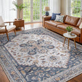 Washable 10'x14' Area Rug Vintage Traditional Distressed Indoor Foldable Thin Retro Accent Floral Non Slip Carpet Living Room Dining Room Office