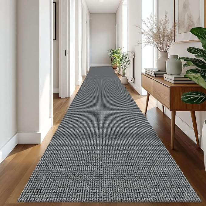 IOHOUZE Washable Exrea Long Hallway Runner Rug 3x20 Non Slip Rubber Backed Kitchen Runner Entryway Runner Indoor, Woven Rugs Floor Carpet for Kitchen Hall Entryway Stair, Dark Grey
