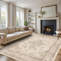 vivorug Beige 9x12 Area Rugs for Living Room, Non Slip Machine Washable Vintage Rug, Ultra-Thin Lightweight Large Area Rug for Bedroom, Dining Room, Low Pile Rug
