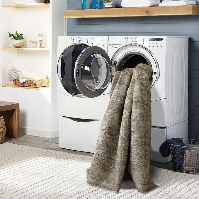 vivorug Runner Rug 2'x7' Vintage Washable Non-Slip Runners for Hallways Kitchen Entryway Laundry Room Carpet Hallway Runner Olive