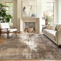 GENIMO Washable Area Rugs for Living Room Bedroom, 9x12 Modern Abstract Non Slip Rug, Low Pile Soft Contemporary Indoor Floor Carpet Cover for Dinning Room Kitchen, Brown