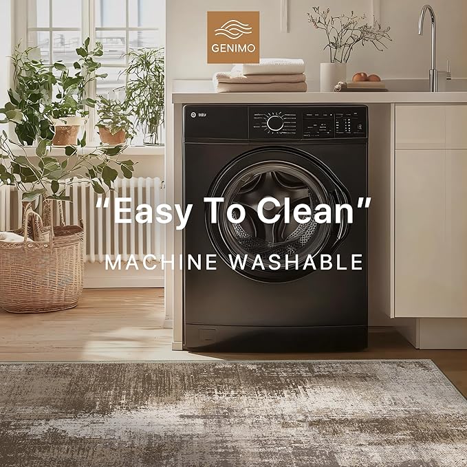 GENIMO Washable Area Rugs for Living Room Bedroom, 10x12 Modern Abstract Non Slip Rug, Low Pile Soft Contemporary Indoor Floor Carpet Cover for Dinning Room Kitchen, Brown