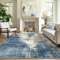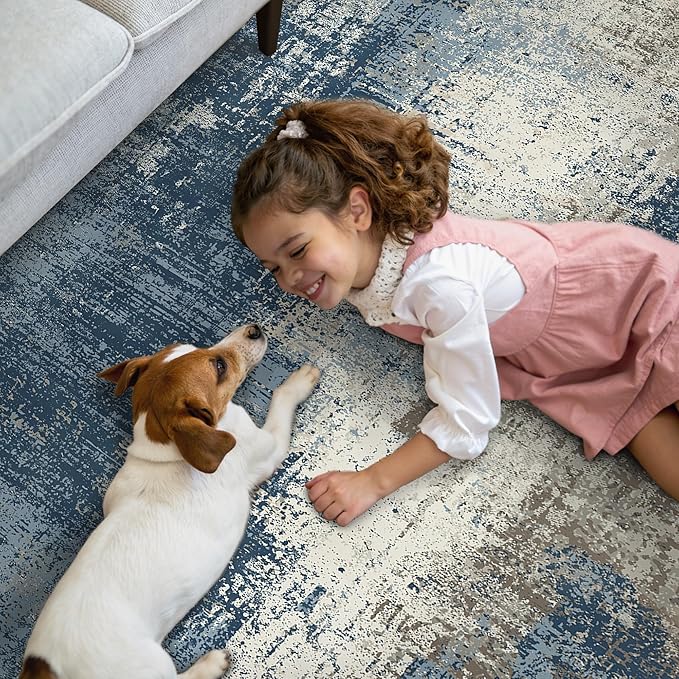 GENIMO Washable Area Rugs for Living Room Bedroom, 9x12 Modern Abstract Non Slip Rug, Low Pile Soft Contemporary Indoor Floor Carpet Cover for Dinning Room Kitchen, Slate Blue