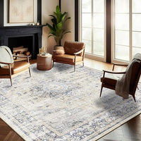Washable Area Rug 10'x14' Floral Blue Boho Design Non-Shedding Easy Care Ideal for High Traffic Areas in Living Room Bedroom Office Coffee Table Kitchen Large Carpet