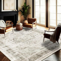Washable Area Rug 10'x14' Floral Khaki Boho Design Non-Shedding Easy Care Ideal for High Traffic Areas in Living Room Bedroom Office Coffee Table Kitchen Large Carpet