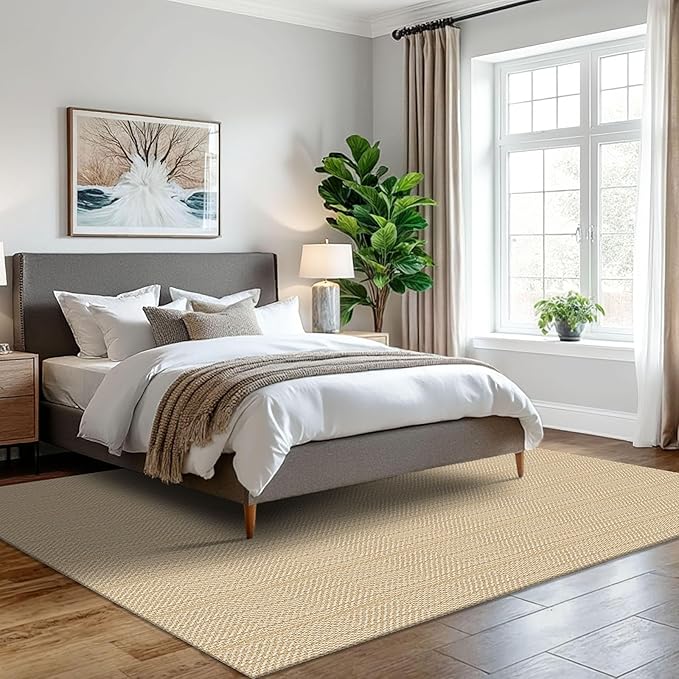 IOHOUZE Washable Area Rug 5x7 Non Slip Rubber Backed Rugs for Living Room, Dining Room Rugs Bedroom Rug, Woven Indoor Floor Carpet for Living Room Nursery, Warm Beige/Orange/Apricot