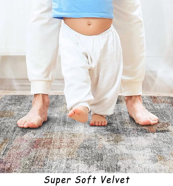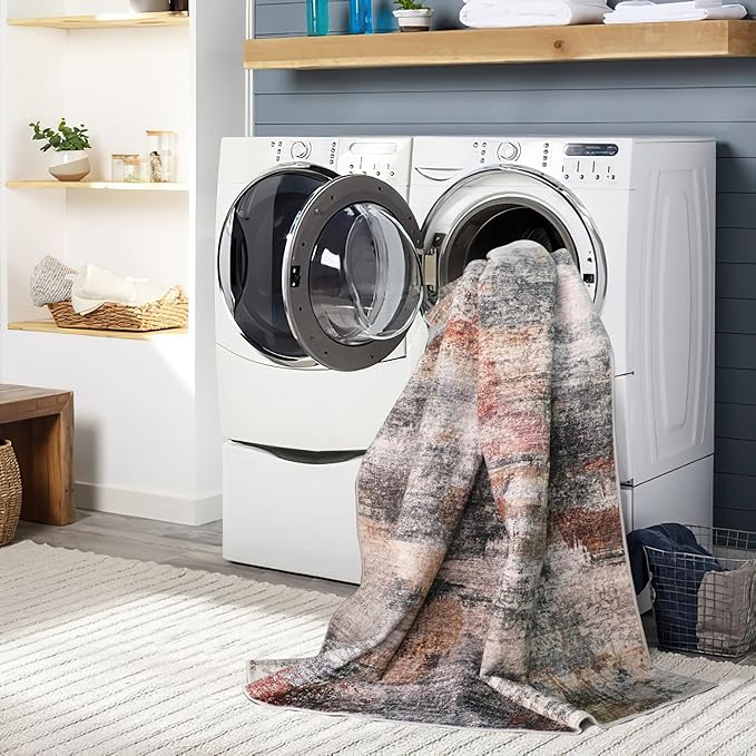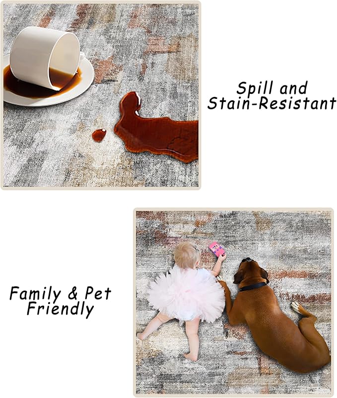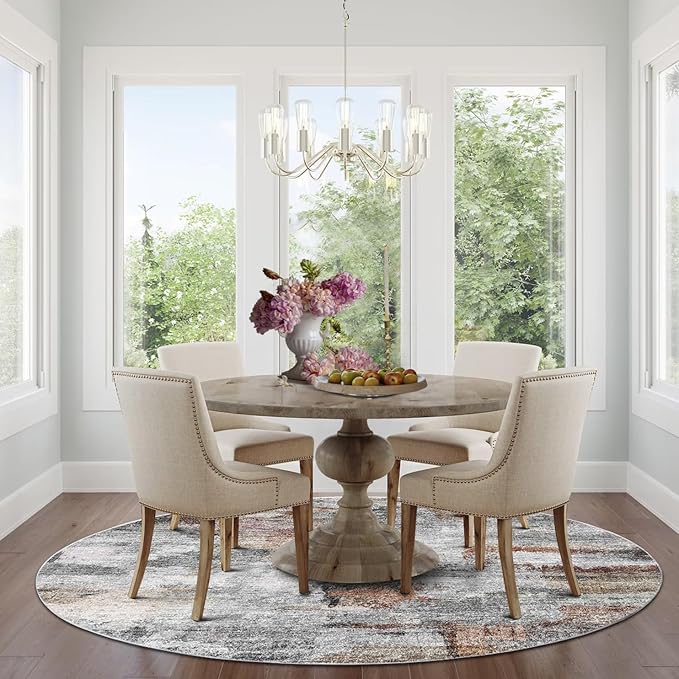 vivorug Round Rug 4ft Abstract Round Area Rug Non-Slip Indoor Carpet for Living Room Bedroom Entryway, Stain Resistant Home Decor Circle Rug, Grey/Rust