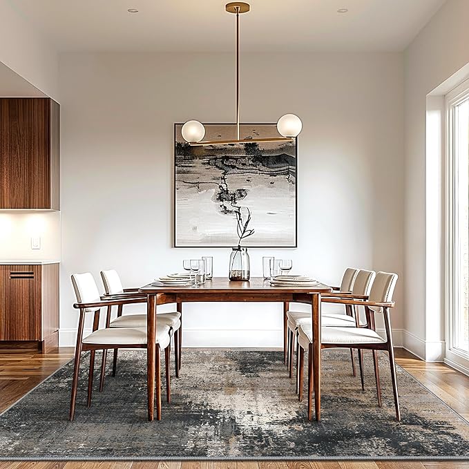 GENIMO Washable Area Rugs for Living Room Bedroom, 6x9 Modern Abstract Non Slip Rug, Low Pile Soft Contemporary Indoor Floor Carpet Cover for Dinning Room Kitchen, Black