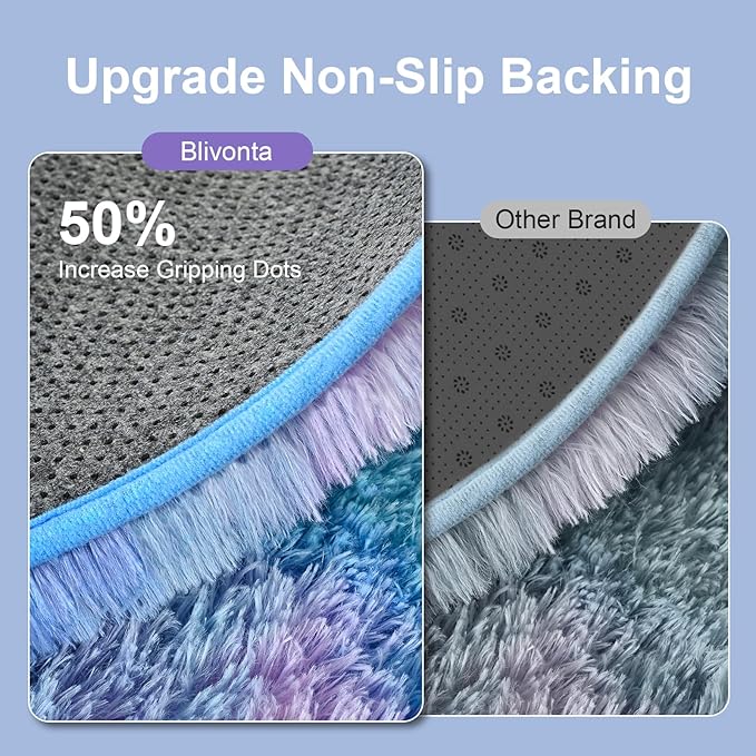 Rainbow Round Rug for Bedroom, 5Ft Fluffy Circle Area Rugs for Living Room, Shag Fuzzy Carpet for Kids Room, Nursery, Dorm, Classroom, Teen, Cute Baby Play Mat Home Decor Aesthetic, Blue