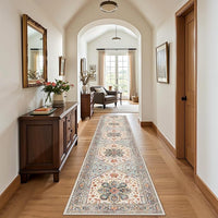 GENIMO 2X10 Runner Rugs for Entryway,Machine Washable Vintage Floor Cover Foldable Modern Non Slip Rug, Low Pile Soft Carpet Floral Print Mat for Indoor Entryway/Bathroom/Kitchen/Carpet,Sky Blue