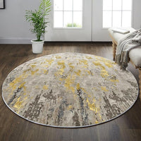 vivorug Round Rug 5ft Abstract Round Area Rug Non-Slip Indoor Carpet for Living Room Bedroom Entryway, Stain Resistant Home Decor Circle Rug, Grey/Mustard