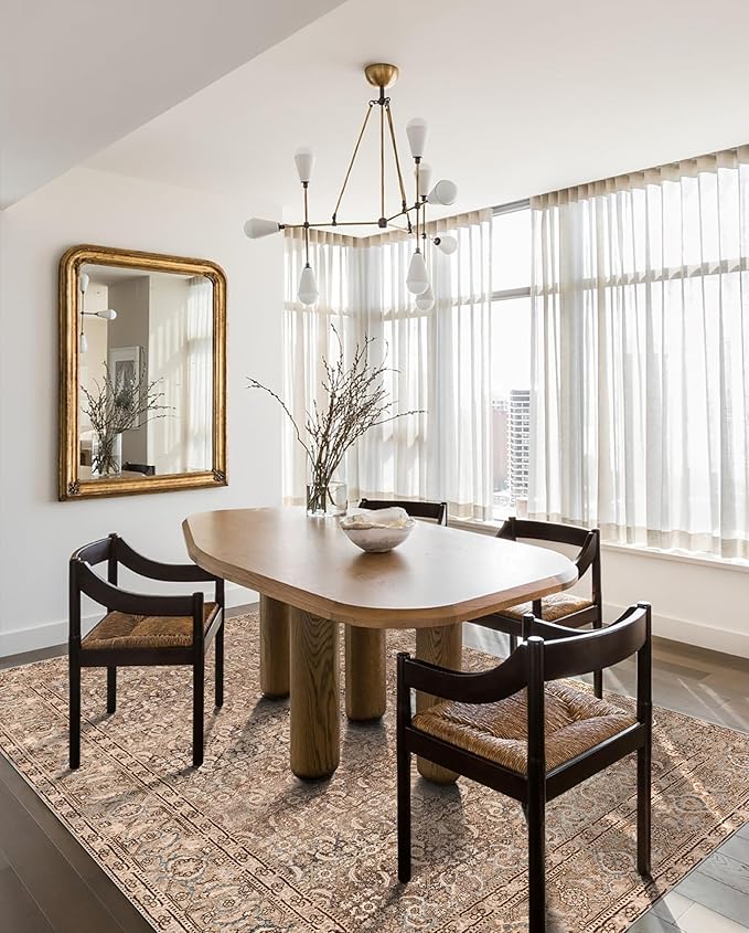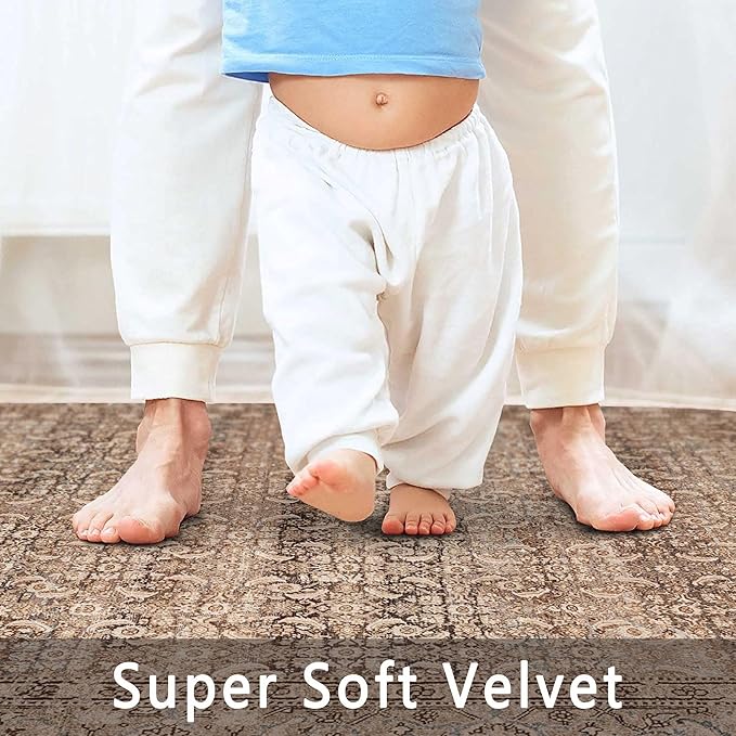 vivorug 5x7 Area Rugs - Ultra-Thin Washable Rug with Non-Slip Backing, Ideal for Living Room, Bedroom, Kitchen Floor Carpet - Vintage, Easy Clean, Durable, Sand/Antique