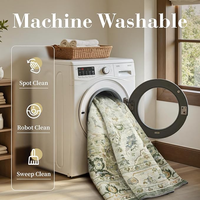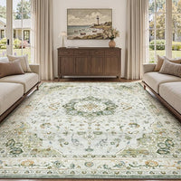 PADOOR-Vintage Area Rug 8X10 Rugs for Living Room-Soft Green Rugs for Bedroom-Machine Washable Rug Non Slip Carpet-Rug for Dining Room Living Room Bedside Office
