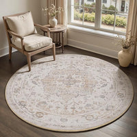 PADOOR-Vintage 6FT Round Rug-Rugs for Living Room-Soft Beige Circle Rug-Machine Washable Rugs for Bedroom-Non Slip Carpet-Rug for Dining Room Living Room Bedside Office
