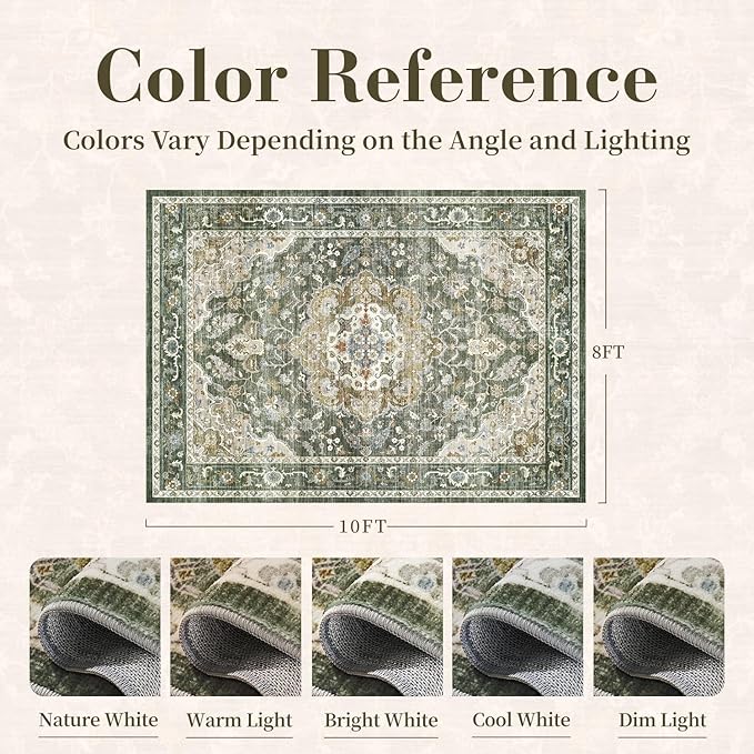 PADOOR-Vintage Area Rug 8X10 Rugs for Living Room-Soft Olive Green Rugs for Bedroom-Machine Washable Rug Non Slip Carpet-Rug for Dining Room Living Room Bedside Office