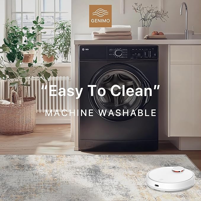 GENIMO Washable Area Rugs for Living Room Bedroom, 6X9 Modern Abstract Non Slip Rug, Low Pile Soft Contemporary Indoor Floor Carpet Cover for Dinning Room Kitchen, Beige Gold