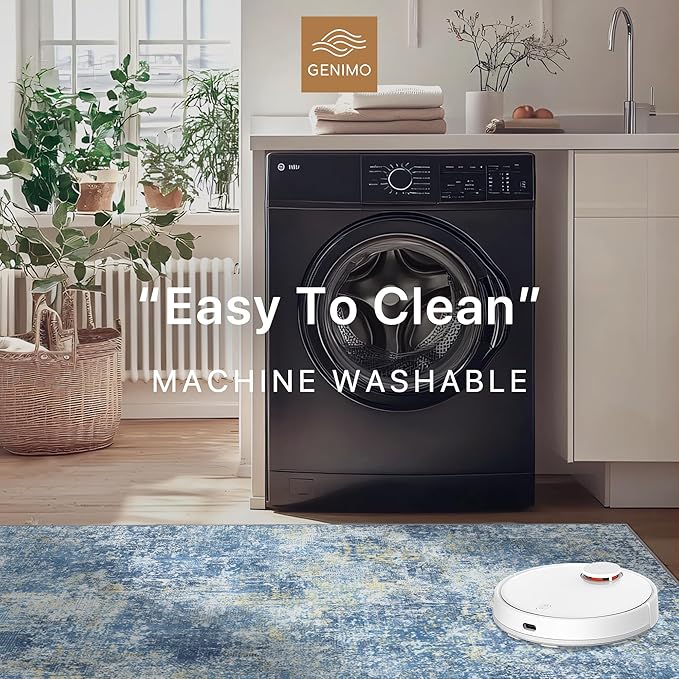 GENIMO Washable Area Rugs for Living Room Bedroom, 6X9 Modern Abstract Non Slip Rug, Low Pile Soft Contemporary Indoor Floor Carpet Cover for Dinning Room Kitchen, Denim Blue