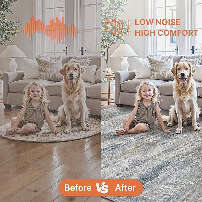 GENIMO Washable Area Rugs for Living Room Bedroom, 8X10 Modern Abstract Non Slip Rug, Low Pile Soft Contemporary Indoor Floor Carpet Cover for Dinning Room Kitchen, Denim Blue Gray