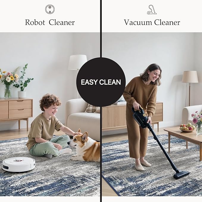 GENIMO Runners for Hallways,2x6 Washable Runner Rug Non-Slip, Long Runner Rugs with Rubber Backing, Low Pile Lightweight Rugs for Kitchen, Bedroom, Bathroom, Entryway, Blue/Ivory