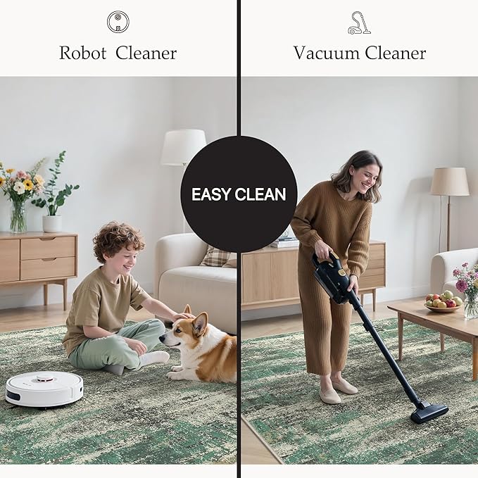 GENIMO 8x10 Area Rugs, Abstract Modern Living Room Rugs, Large Machine Washable Rug Non-Slip, Soft Pet Friendly Rugs for Bedroom, Playroom, Dining Room, Sage Green
