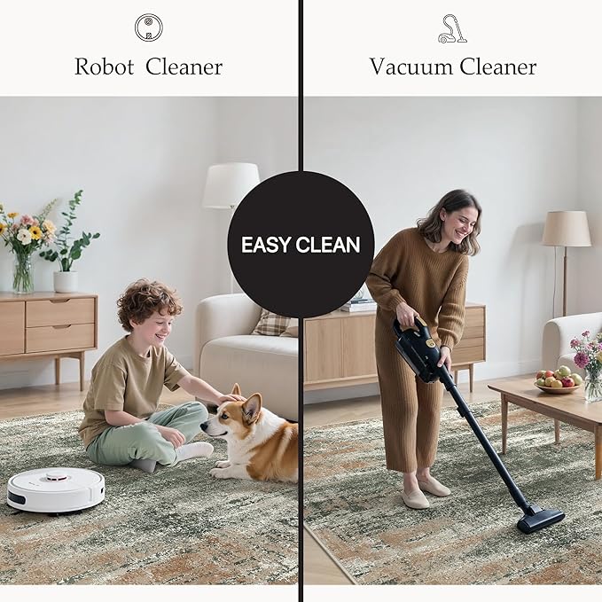 GENIMO 6x9 Area Rug-Washable, Lightweight Foldable Low Pile Carpet with Rubber Backing, Modern Pet Friendly Decorative Rug for Living Room, Bedroom, Playroom, Gray Mist