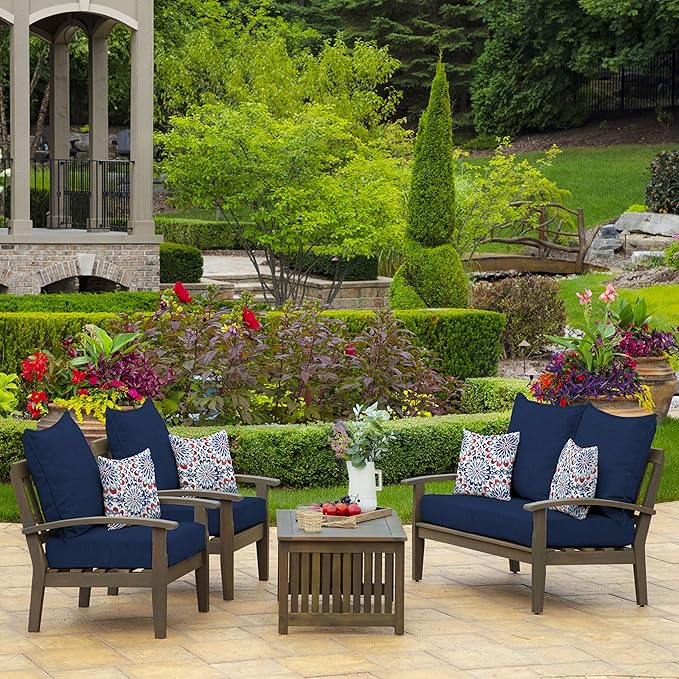 Arden Outdoor Deep Seat Cushion Set, 24 in x 24 in, Weather-Proof, Rain-Proof, Fade Resistant Patio Cushion for Chair, Sofa, and Couch Sapphire Blue Leala