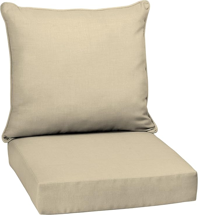 Arden Outdoor Deep Seat Cushion Set, 24 in x 24 in, Weather-Proof, Rain-Proof, Fade Resistant Patio Cushion for Chair, Sofa, and Couch Tan Leala